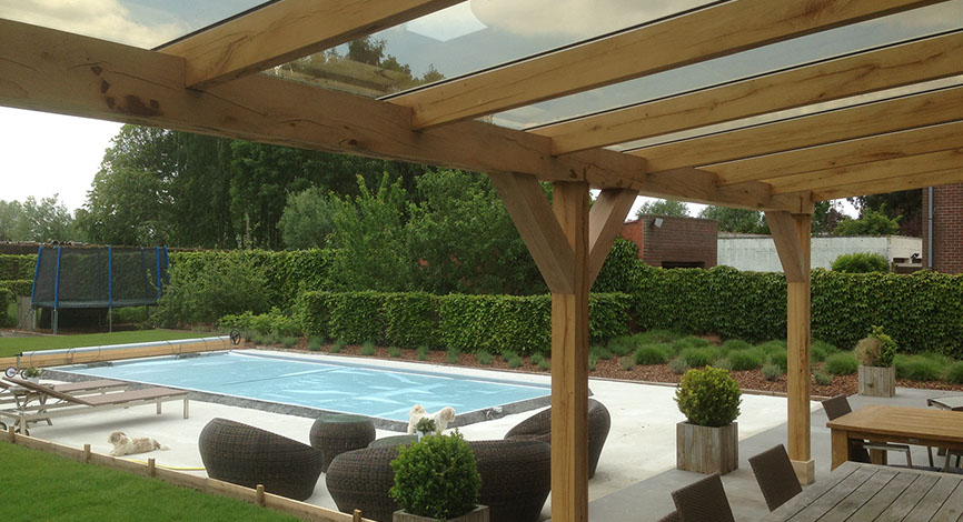 Uitgevoerd werk : Houten platform als vijverafwerking installeren